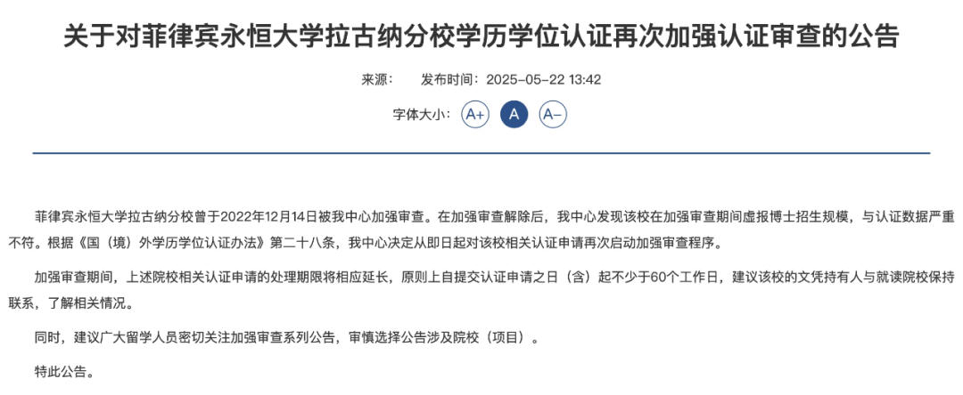 不久前,教育部留学服务中心发布多条关于海外高校学历学位认证再次加强认证审查的公告。